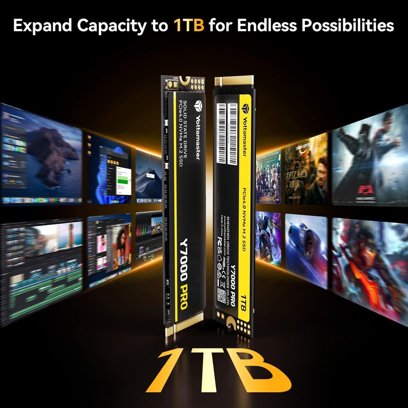 Yottamaster Y7000Pro 1TB SSD M.2 PCIe 4.0, up to 7000MB/s, M.2 2280 NVMe Internal Solid State Drive with 3D QLC NAND Flash, Memory Upgrade for PS5, PC, Computer, Laptop, Gaming