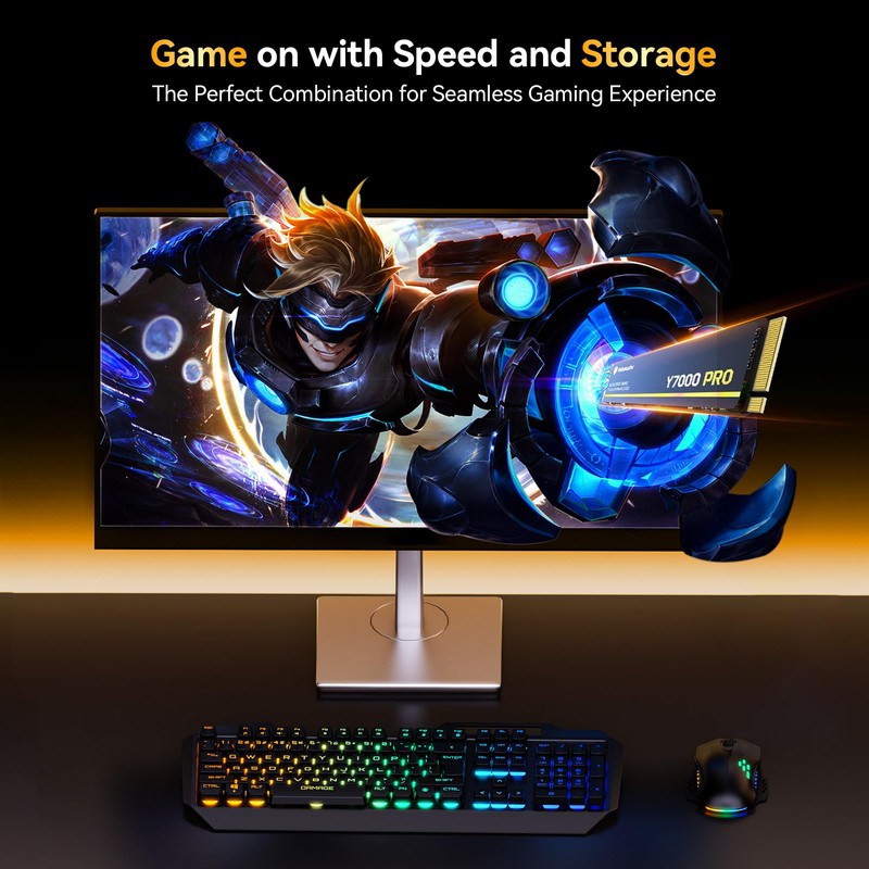 - Ultra high read and write speed: The SSD uses PCIE 4.0 interface technology in combination with QLC 3D NAND flash and its speed is significantly increased by 43% compared to PCIE 3.0. The read speed is up to 7000 MB/s and the write speed up to 6500 MB/s. Significantly improves the efficiency of data transfer and system response speed, especially suitable for applications that require a fast response, such as B. Video editing/gaming.