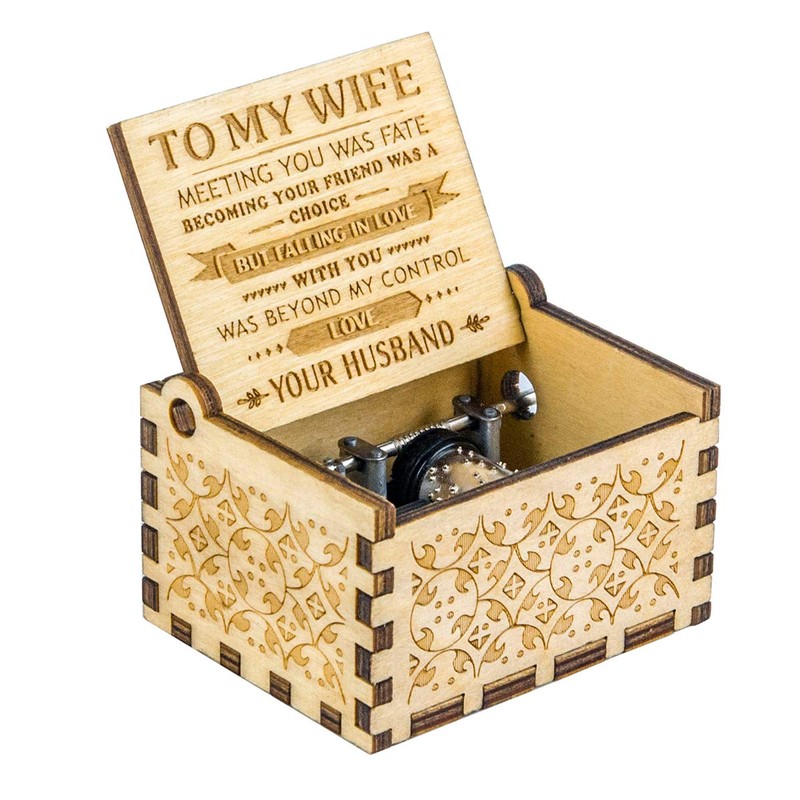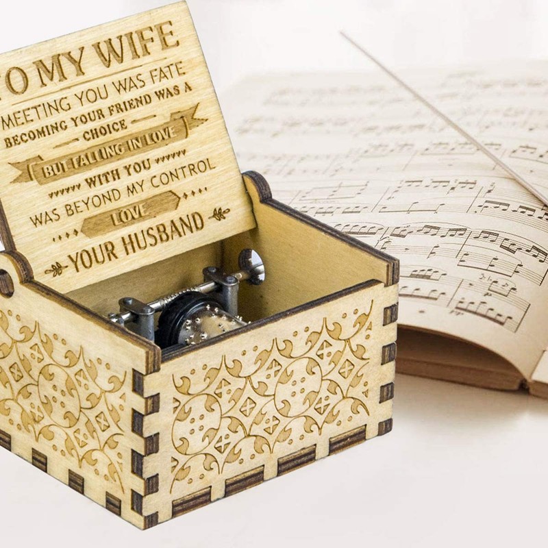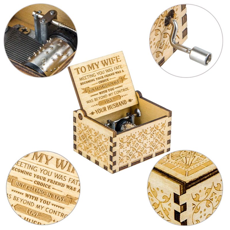 • オルゴール ラブ フレーズ: このロマンティックな木製オルゴールは、ボックスの内側から刻印された意味のあるメッセージです。面白い愛の引用が付いています:" To my wife,meeting you was fate, becoming your friend was a choice,be you was my Control,love,your husband" の文字が手で彫られています。