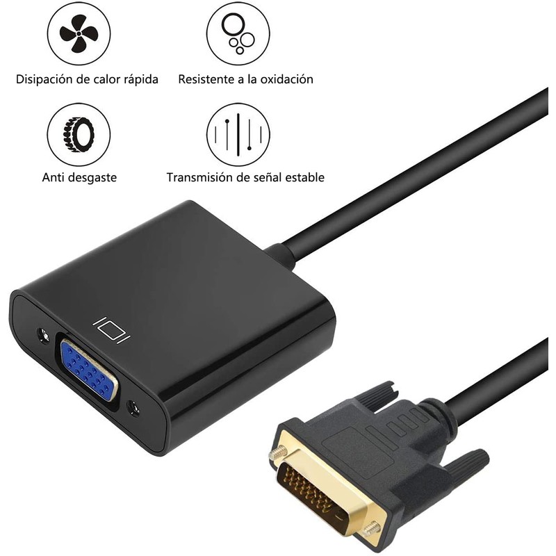 - Configuración rápida y sin complicaciones: DVI-D a VGA, DVI-D macho de 25 pines a VGA hembra de 15 pines.