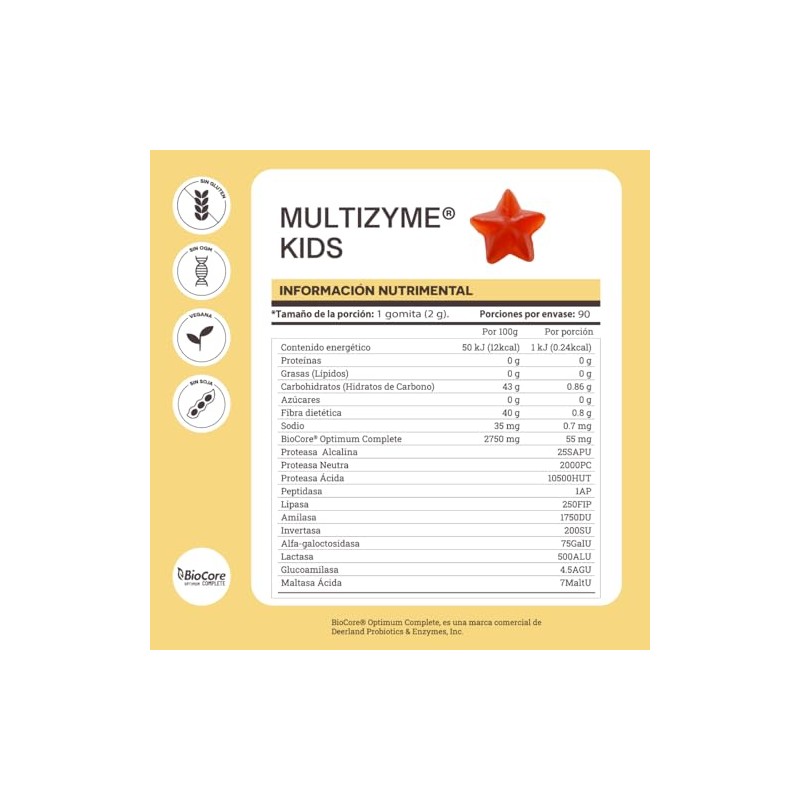 - Fórmula Especial para Niños - Diseñada para apoyar la digestión adecuada en niños de 3 a 11 años, facilitando la descomposición de proteínas, grasas y carbohidratos.