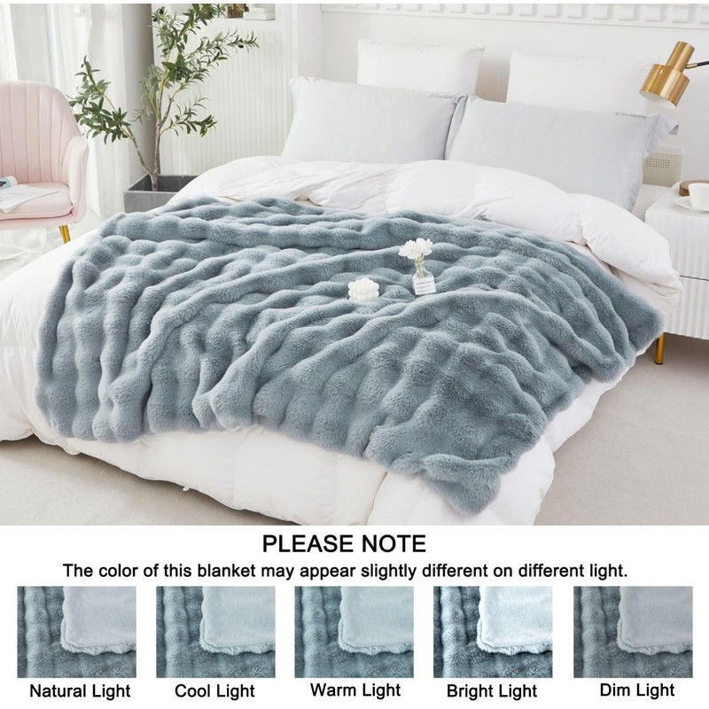 - [Luxurious Cozy Rabbit Faux Fur]- Our faux fur grey blanket is ultra soft to the touch. Front Side: Upgraded 380GSM high density fluffy fax rabbit fur creates a delicate and cozy touch feeling. Back Side: Ultra soft crystal velvet is skin-friendly,lightweight,breathable,durable. Reversible sides design will keep you warm with its fluffy fabric. Enjoy the ultimate comfort!Blanket Size: 51''x 63''.