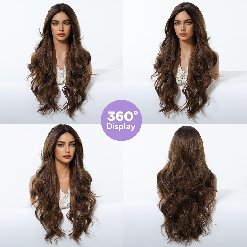 - Brown wig Characteristic: 26 Inch long ombre brown wig for women Wigs is Made Of Upgraded Protein Fiber,Hair is Soft and Using New Upgraded Techniques Will Make Wig Wearing More Natural And the Color is More Natural and Glossy