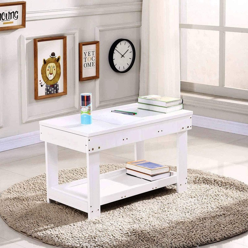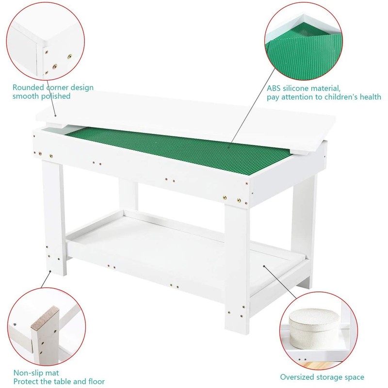 YouHi Kids Activity Table with Board and Storage for Bricks Activity Play Table (White Double Table)