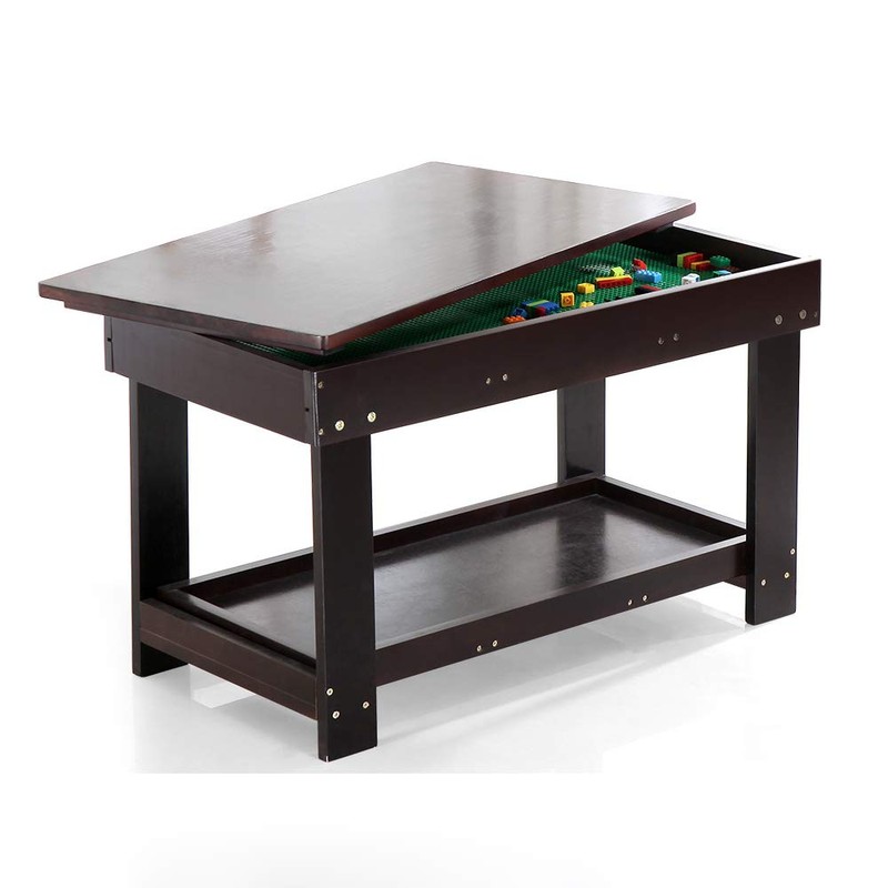 YouHi Kids Activity Table with Board for Bricks Activity Play Table (Dark Brown)