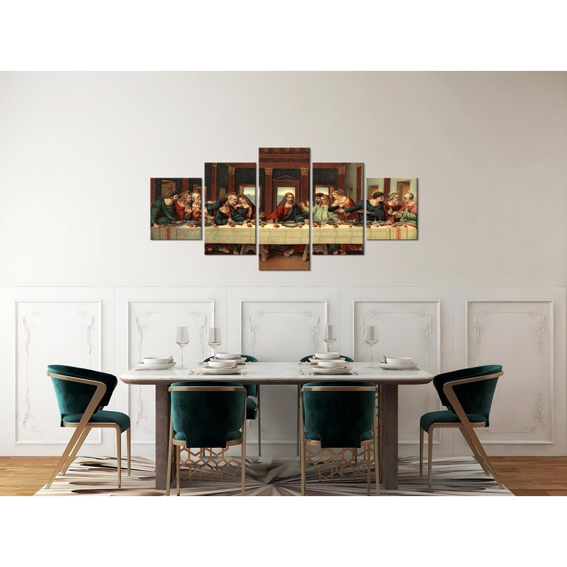 YOUHONG 5 Piece Leonardo Da Vinci Dining Room Decor Christian Decor Religious The Last Supper Painting Jesus Pictures for Wall Decor Ready to Hang (60''W x 32''H)