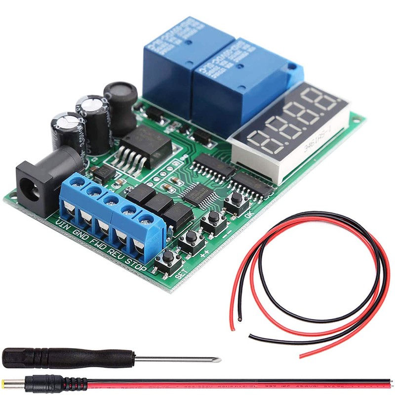 Youmile 5V - 24V DC Motor Forward/Reverse Controller module Timing Delay Time Cycles Relay Motor Controller Board with red and black cable DC male cable Screwdriver