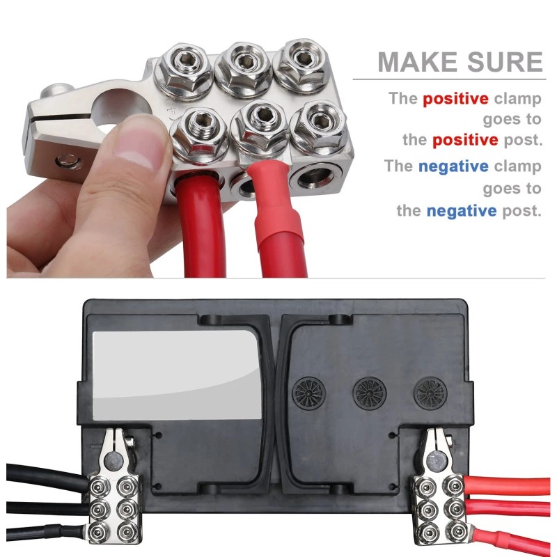 【Easy to install】Use our Alan wrenche provided to tighten the wires and to attach the terminal to the post.Just make sure that the positive clip is connected to the positive pole and the negative pole is connected to the negative pole, which is easy to identify the installation and prevent the risk of electric shock.