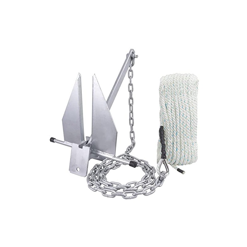 Young Marine Portable Galvanized Fluke Style Anchor Kit Includes Galvanized Fluke Anchor, Rope, Shackles, Chain 8LB 10LB (10 LB)