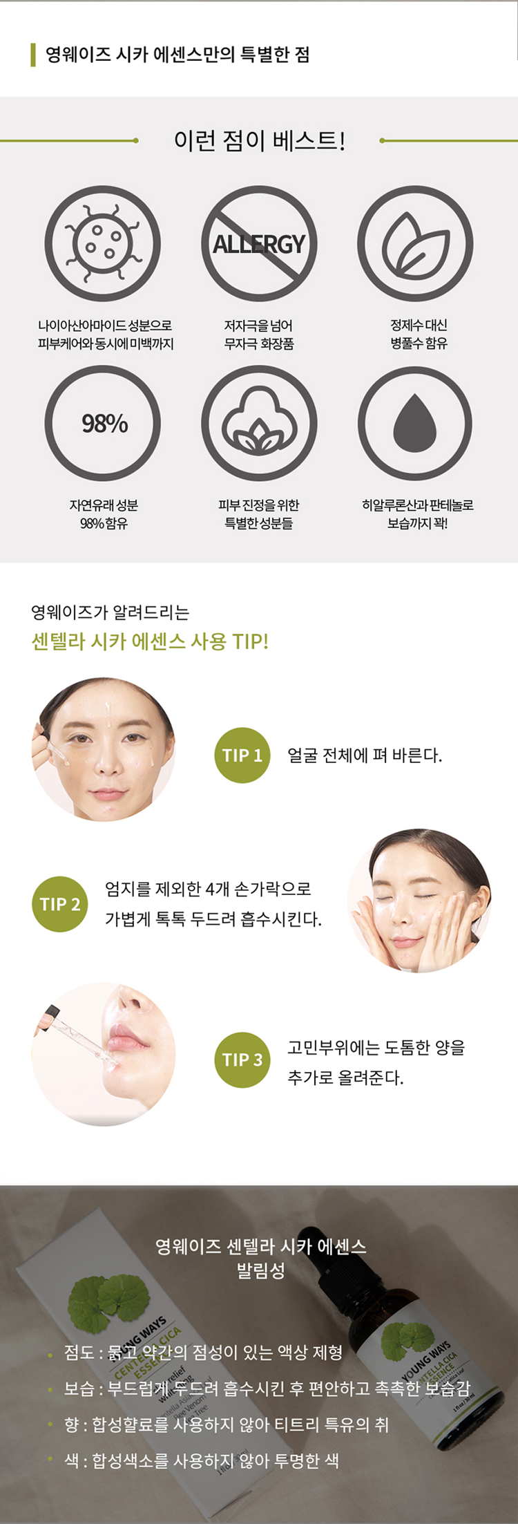 Young Ways (formerly True Heart) Centella Cica Spot Essence, tea tree, Houttuynia cordata, centella asiatica / 영웨이즈(구 트루하트) 센텔라 시카 스팟 에센스, 티트리, 어성초, 병풀