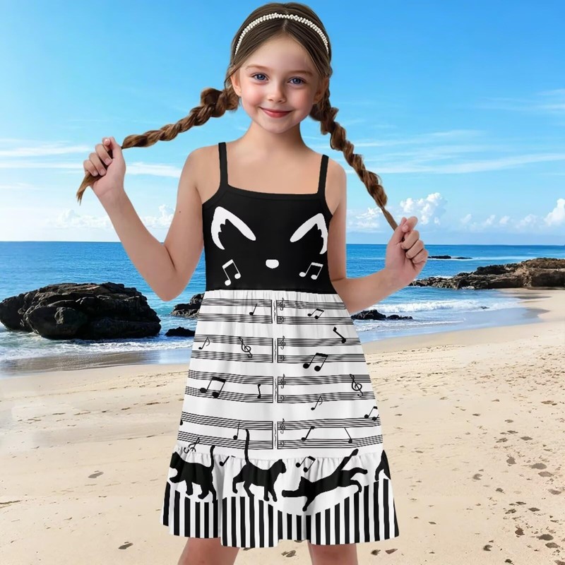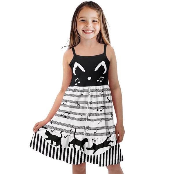 Youngerbaby Music Note Dress for Little Girls Size 9-10 Cat Spaghetti Strap Crew Neck Sundresses Back to School Clothes Summer Dress One Piece Dresses