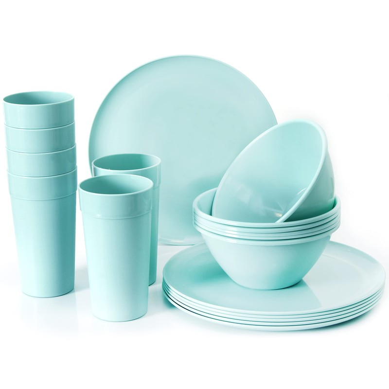 Youngever 18-Piece Plastic Kitchen Dinnerware Set, Plates, Dishes, Bowls, Cups, Service for 6 (Mint Color)