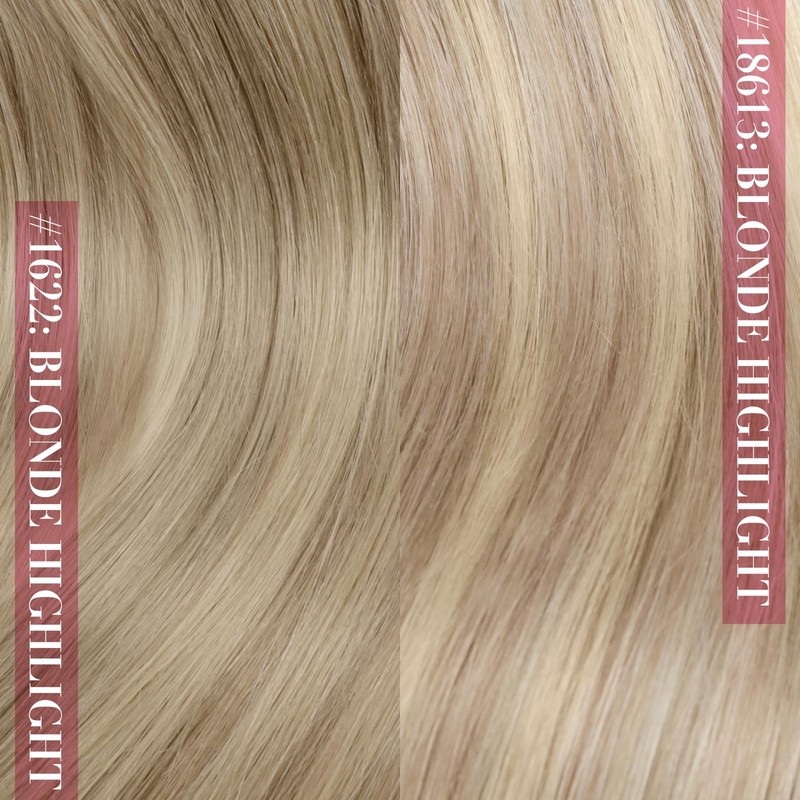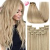 YoungSee #16/22 Real-Hair Extensions Clip-In Blonde 45 cm Golden Highlights Medium Invisible Clip Extensions Thick 135 Grams