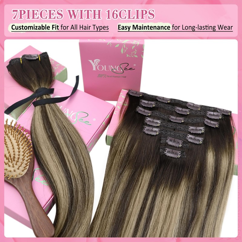 - Easy to wear and style at home: With user-friendly clips, YoungSee clip in hair extensions real human hair are easy to install at home, allowing you to quickly transform your look from short to long or thin to thick with minimal effort