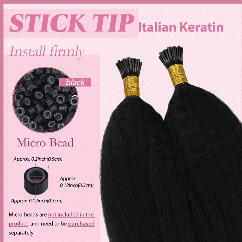 YoungSee I Tip Hair Extensions Human Hair Black Itip Hair Extensions Kinky Straight Itips Hair Extensions Real Human Hair Curly I Tips Human Hair Extensions Jet Black I-Tips Extensions 18inch 60s 50g