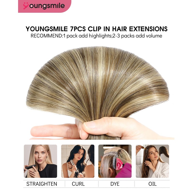 - Versatile Styling Options: Straighten, curl, or dye Youngsmile extensions just like your natural hair (heat-resistant up to 250°F). Create endless hairstyles, from straightening to curling , for a stunning transformation