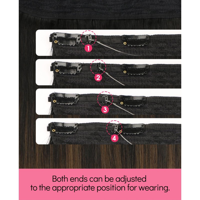 - 2.Multiple specifications: Youngsmile extension cords come in various lengths and weights (14-16 inches=70 grams, 18-22 inches=85 grams), with 4 clips on each hair extension to secure it when worn, and the hair extension edges can be adjusted to fit your head circumference. It can be worn at home within a few minutes. No glue or heating is required for bonding, making it easy to wear and remove