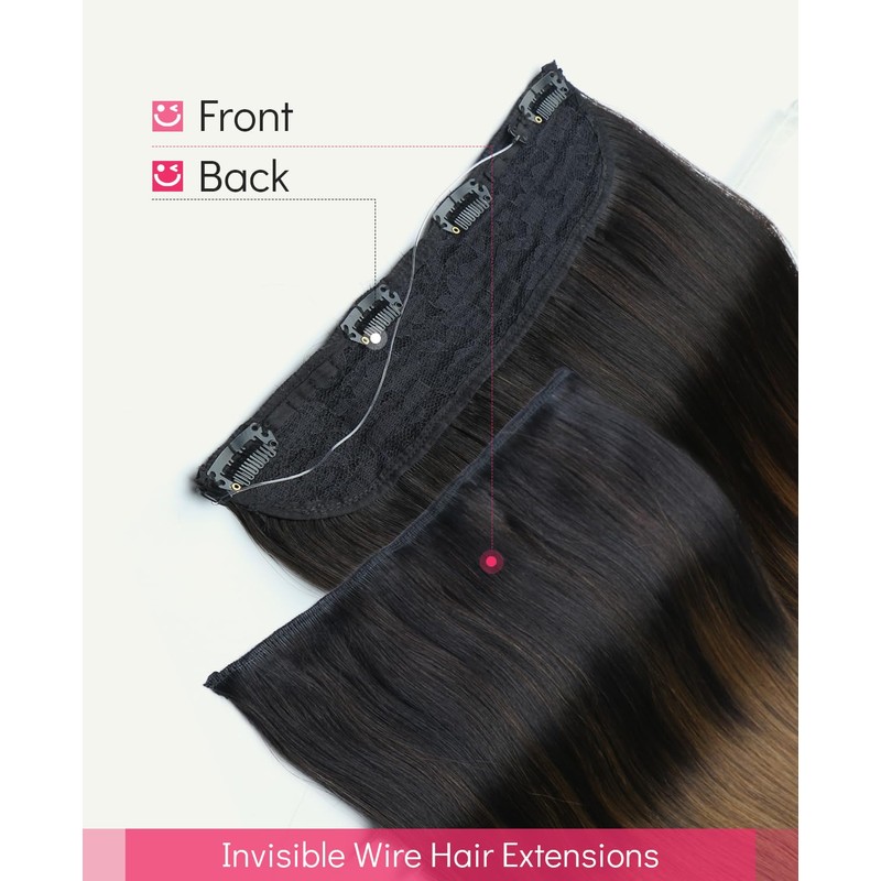 Youngsmile Wire Hair Extensions #1BT4 Natural Black to Medium Brown Invisible Line Wire for Real Human Hair Fish Line 20Inch Hair Extensions 85g Thick Hair Exteniosn for Women(wire#1BT4-20inch)