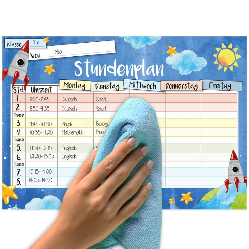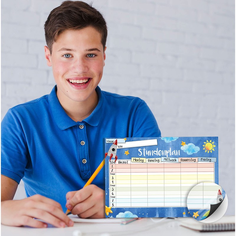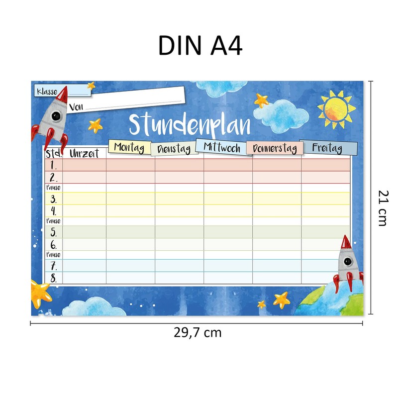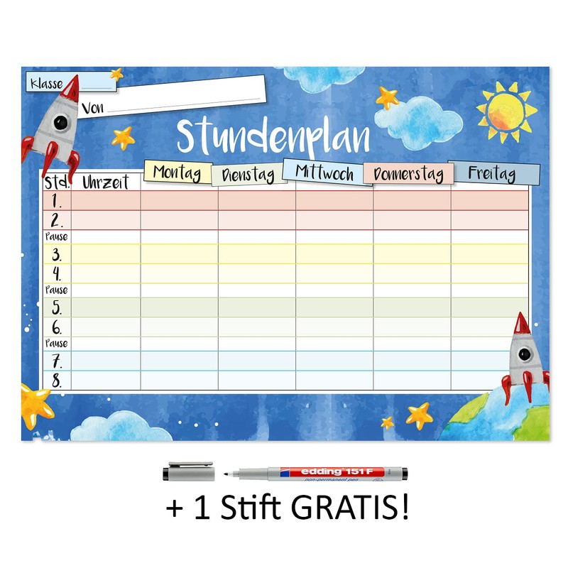 - 1 timetable in DIN A4 format (210 x 297 mm), includes pen