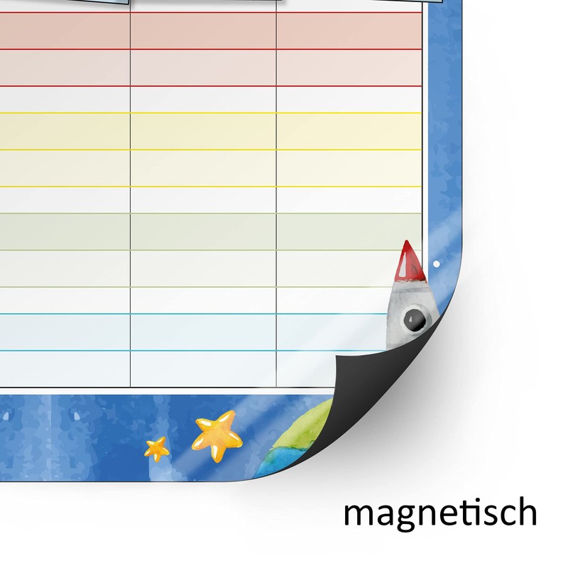 The timetable can be written on with a non-permanent marker and can be wiped clean. Instructions for use: timetable and contact surface should be clean, dust-free and grease-free, so that the magnetic film adheres optimally to the surface. The adhesive force depends on the iron content of the substrate and position of the magnetic film.