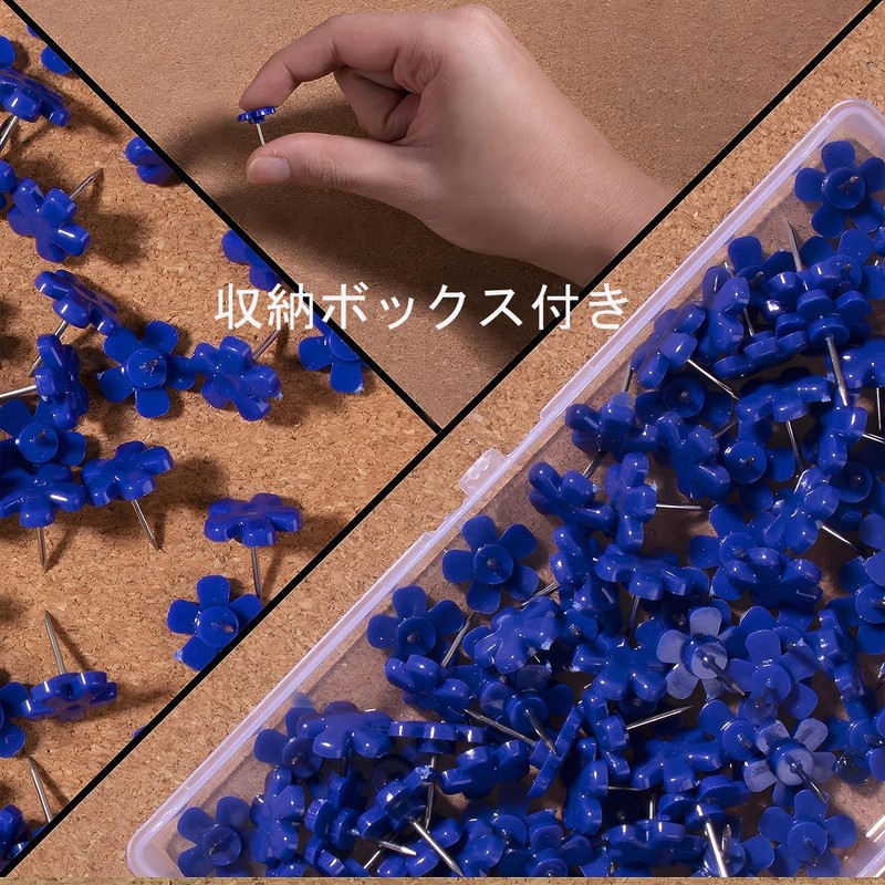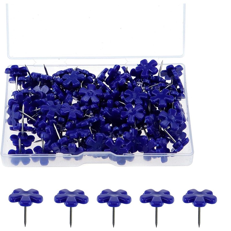YOUOWO Push Tacks Fashionable Push Pins Plum Shape Push Pins Blue 150 Pieces Set Map Pin Board Maps Bulletin Board Photo Calendar Craft Architectural Model Decoration Fixing Case with Storage Case (Blue Flower Shape)