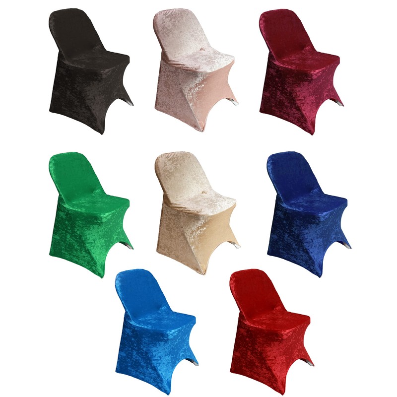 • For years now, we've been supplying these velvet stretch chair covers to chair cover rental companies, restaurants, wedding venue owners, hotel and catering business owners. These types of chair slipcovers stylishly contour folding chairs, giving them the sleek, formal appearance.