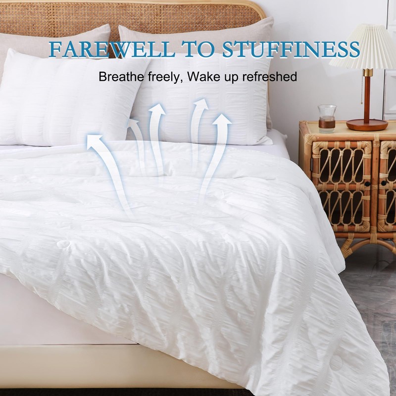 - 【Dry & Breathable】This comforter is highly breathable, effectively wicking away moisture and perspiration. Its lightweight construction keeps you dry all night long, eliminating the worry of heatstroke and allowing you to enjoy a fresh, breathable sleep.