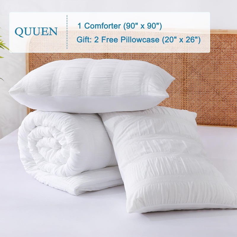 - 【Soft as a Cloud – All-Night Comfort】Queen-size 90 x 90 in.Filled with premium microfiber and crafted with a breathable shell, this duvet ensures cloud-like softness and quiet, cozy sleep. Box stitching keeps the fill evenly distributed and prevents clumping.