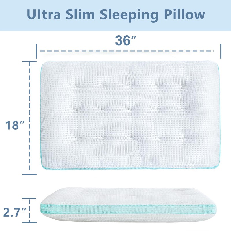 - 【Special Fabric Design]】18x36 Inches, The fabric of the flat pillow is designed with thousands of breathable holes, which has excellent softness and moisture absorption and breathability. It can effectively promote air circulation and quickly dissipate heat, keeping your sleep fresh and comfortable.