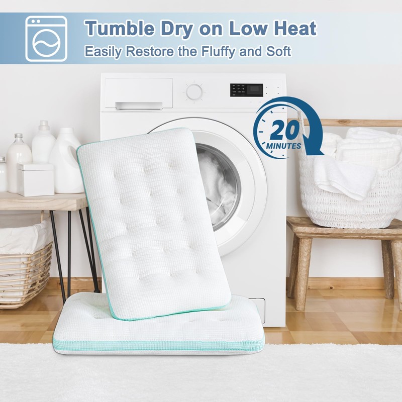 - 【Dry! Instant Fluffy!】Your pillows may arrive slightly bunched or harden due to Vacuum compression. Don't worry ! No need to wait long to get back fluffy! It is recommended to put it in the dryer and dry it at low temperature for about 20 minutes to quickly restore the fluffy and show ideal comfort.