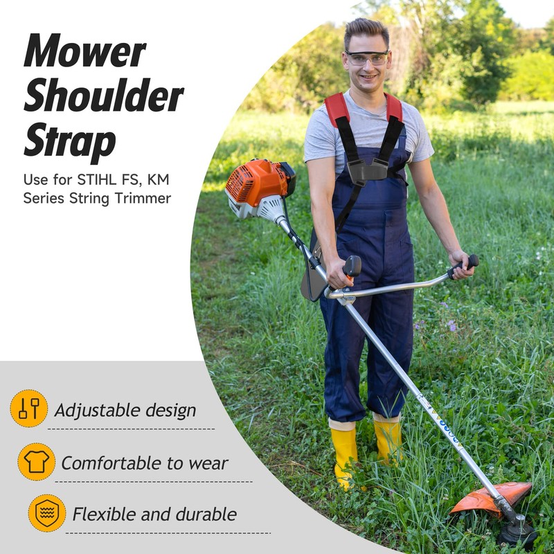 • GREAT FUNCTION - Trimmer shoulder strap makes it easier to trim the lawn. Lose the weight. Reduces shoulder and body fatigue by distributing weight across your entire upper body.