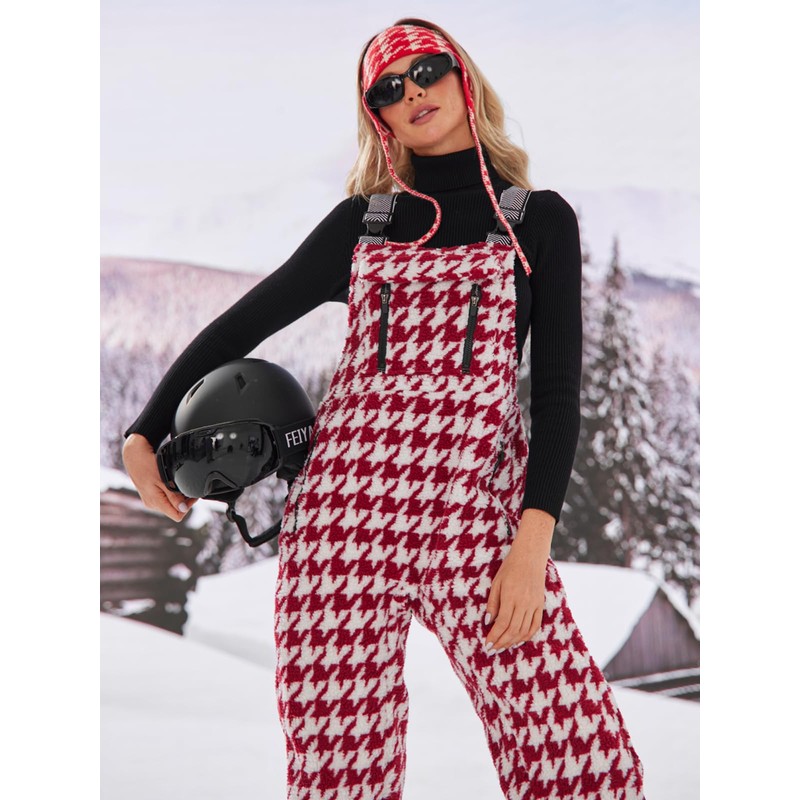 - Feature: Women fleece jumpsuit, classic houndstooth pattern, adjustable suspender straps, front zippered pouch pocket, two Side pockets, casual loose bib overalls with lining, winter outfit. Trendy style, women overalls is perfect for spring, fall and winter.