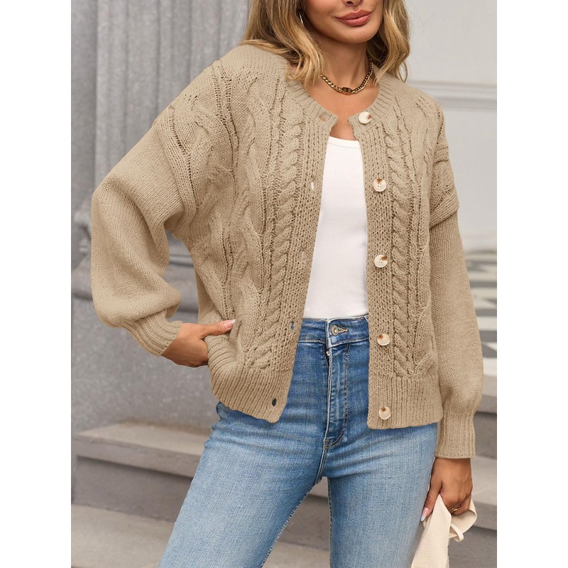 Yousify Womens Open Front Cardigan Sweaters Casual Cable Knit Long Sleeve Button Down Chunky Loose Fall Sweater Khaki