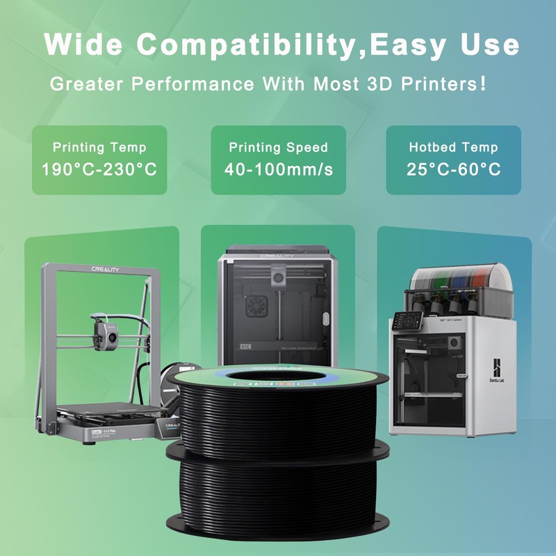 • 【Low Odor】During printing, PLA produces minimal odor and is almost odorless, making it more comfortable to use in home or office environments. This feature enhances the user experience, making it suitable for long printing sessions in various settings.