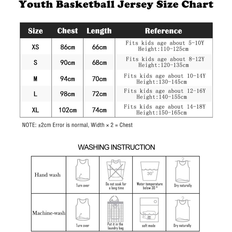 ①Youth ★XS/ Chest 33.9''/ Length 24.2'',Fits kids age about 5-10Y,Height:44.4''-50.4''★