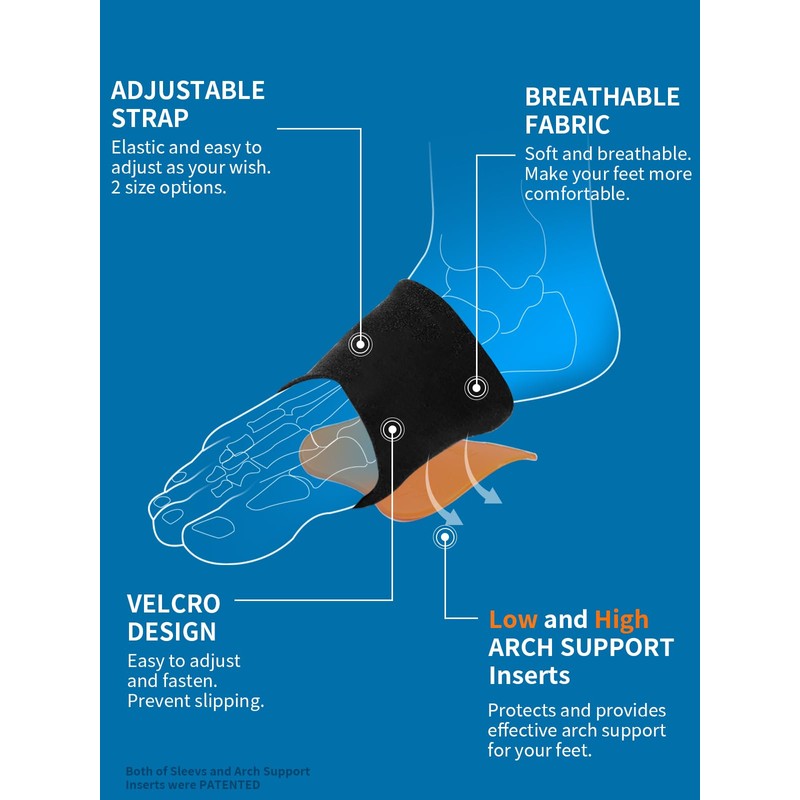 - Fits in any shoe: These arch support sleeves are adjustable, you can wear them barefoot or with any shoe and do sports anytime and anywhere. A perfect solution for open back shoes.