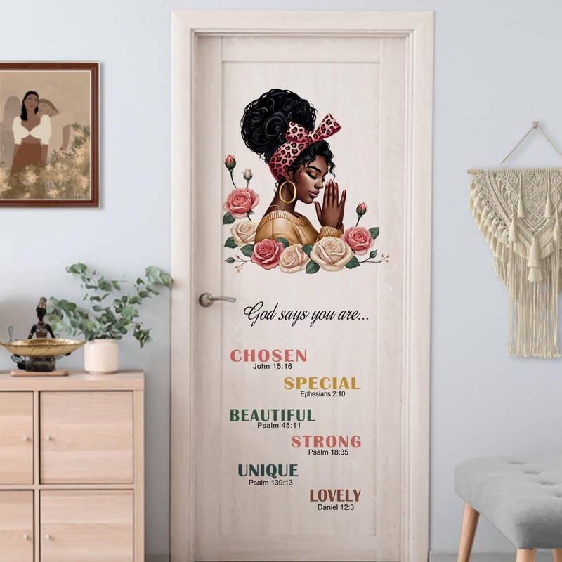 Yovkky Black Girl Inspirational Quote Wall Decals Stickers, African American God Says You are Home Girls Women Bedroom Decor, Positive Rose Flower Living Room Kitchen Decorations Art