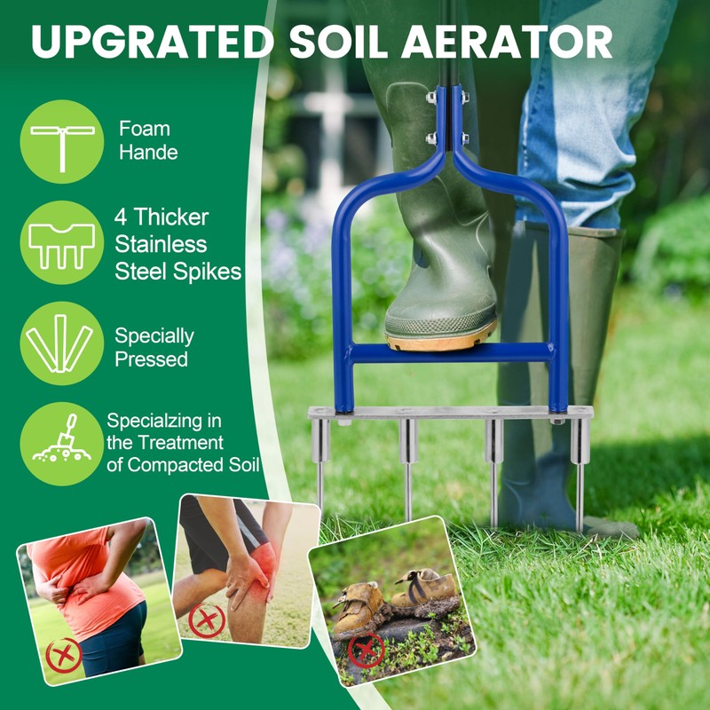 - What You Can Get -- a 39.4" lawn aerator with 4 long stainless steel spikes, a 12 months service. Please be easy to contact us at any time, we are always waiting for you.