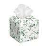 YPPAHHHH Square Tissue Box Cover Green Eucalyptus Leaves Pattern Cube Tissue Box Cover Pu Leather Tissue Box Holder for Office Kitchen Car Bathroom Facial Paper Organizer Dispenser Cover
