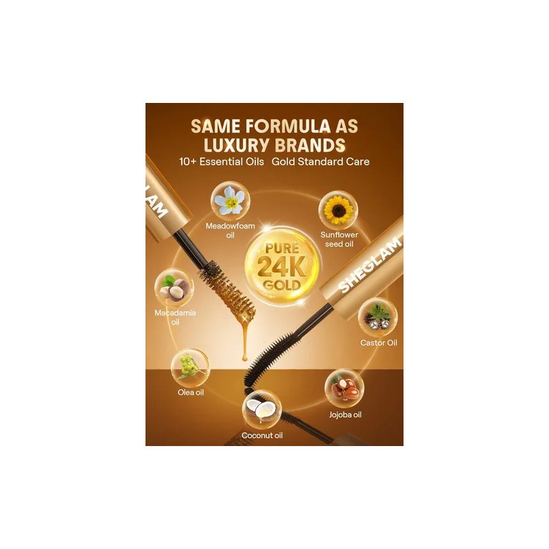 Descubre el estándar dorado del lujo for las pestañas con la máscara All-In-One 24K de SHEGLAM. Enriquecida con oro puro de 24K y una poderosa mezcla de ingredientes nutritivos como péptidos, aceite de oliva y aceite de semilla de babasú, esta fórmula 2 en 1 define y da volumen a las pestañas con un efecto multidimensional duradero.
