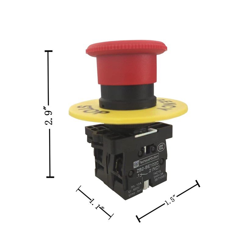 YQBOOM 22mm 2 NC Red Mushroom Emergency Stop Push Button Switch AC 600V 10A(1PCS)