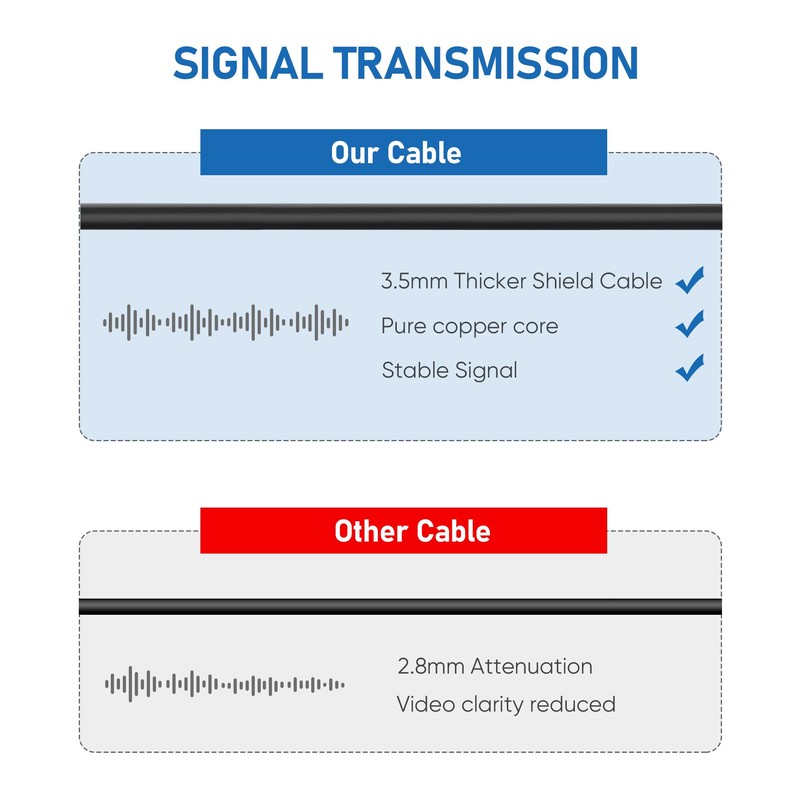 Pure Copper Thicker Shield Dash Cam Cable: We use pure copper with a diameter of 3.5mm thick wire (most of the original rear view camera cables are 2.8mm). Due to the excessive extension, we must use thick wire with a shielding layer to reduce signal loss, otherwise the video clarity will be reduced.