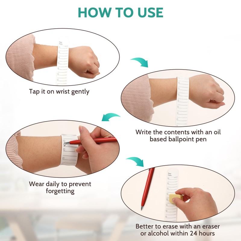 - What you will receive: You will receive 4 reusable wrist notepads, each containing 2 different colors, white and cyan, sufficient quantity to meet your daily recording needs.