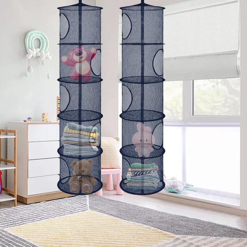 - 【Package Includes】You will receive 2pcs hanging storage mesh measures 30cm (Diameter) x 138cm (Height). With 5 compartments, this hanging mesh storage is helpful to classify and store all kinds of clothes, toys and sundries