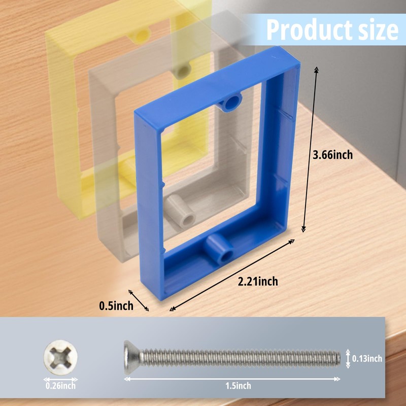 • 【Package Content】The package contains six blue single gang outlet box extenders and the corresponding installation screws.