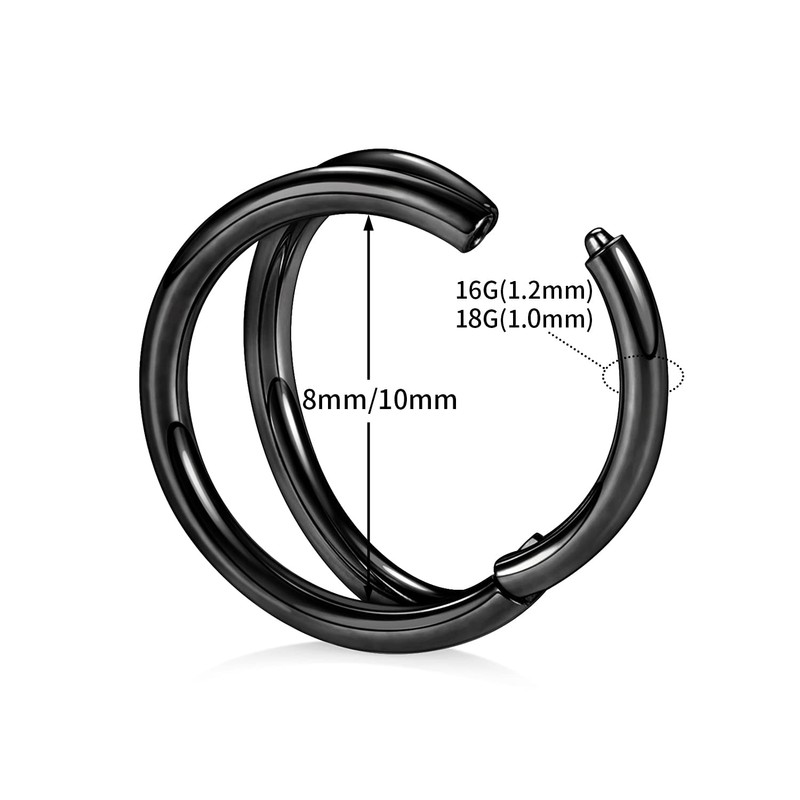 • Hinged Double/Triple Nose Ring Hoop-316L stainless steel various usage nose ring hoop has variouble size for your choose- 14gauge(1.6mm)/16 gauge(1.2mm)/18 gauge(1.0mm)/20 gauge(0.8mm) and Inner Diameter in 6mm/7mm/8mm/9mm/10mm/12mm. Also we have color in silver/Rose Gold/rainbow/rose gold/gold color.You will get the gauge size and diameter size you choose