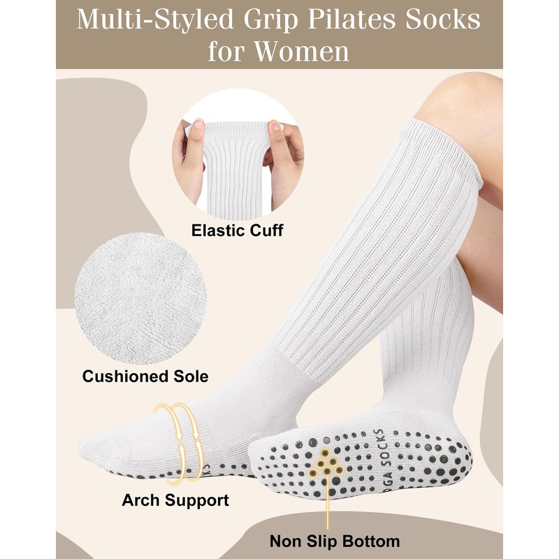 - Cotton Slouchy Socks: Pilates Socks with Grips for Women is made of 91.8% cotton, soft and comfy, breathable and sweaty keeping your feet dry all day; Barre socks are suitable for women in US sizes 5 to 9 and medium thickness can be worn all year round
