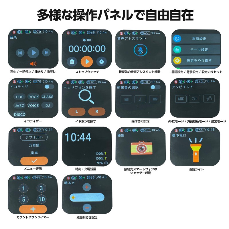 【YSN スマートディスプレイ搭載 ANCワイヤレスイヤホン】ノイズキャンセリング Bluetooth5.4 イヤホン タッチ操作 液晶ディスプレイ ワイヤレスイヤホン ANC 外音取り込みモード ハンズフリー通話 ブラック