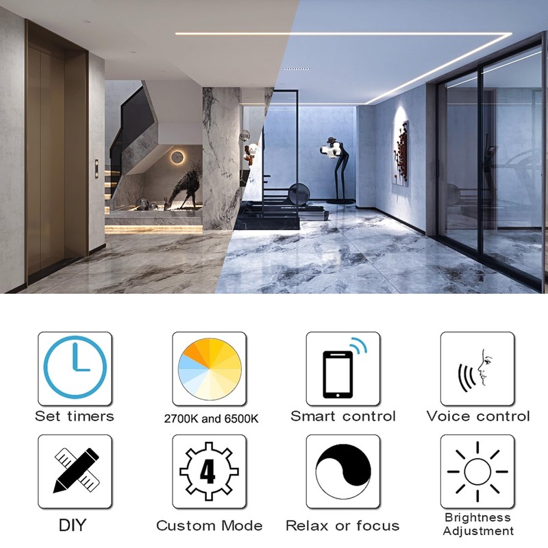 - Wide range of applications and long service life. Suitable for home decoration. e.g. kitchens, cabinets, bedrooms, stairs, mirrors, hallways, DIY backlighting, table lamps, toy lamps, DIY lighting, special and other lighting, etc. IP30 not waterproof (only for indoor spaces). The products include: FCOB CCT LED strips, controller, 24V3A power supply.