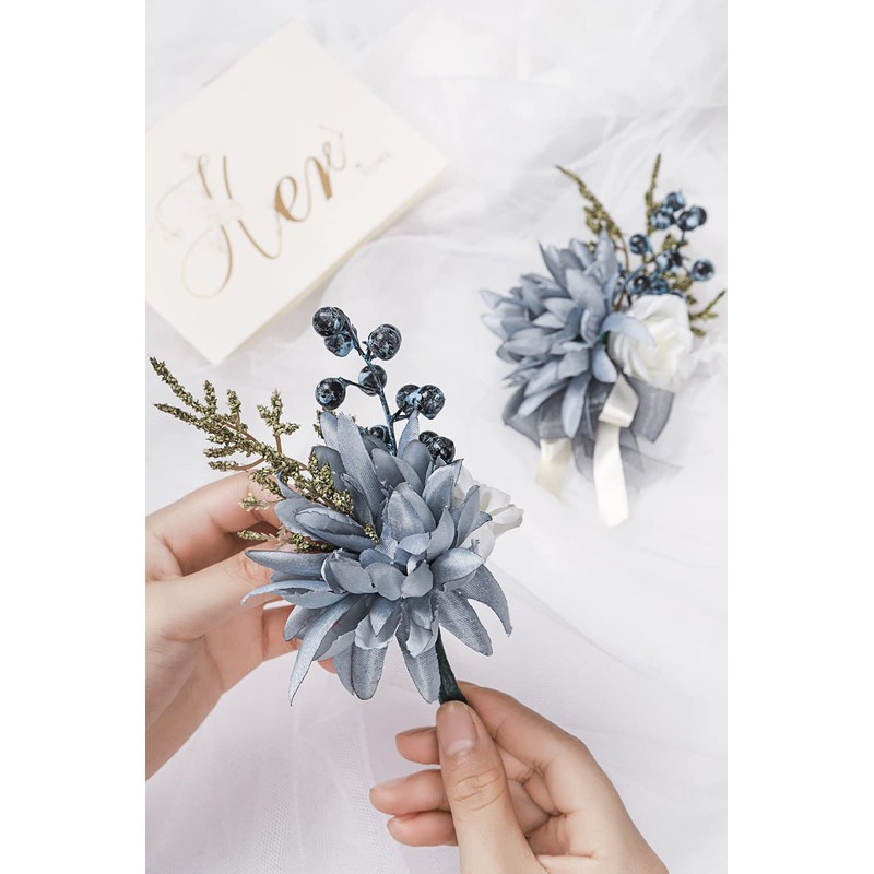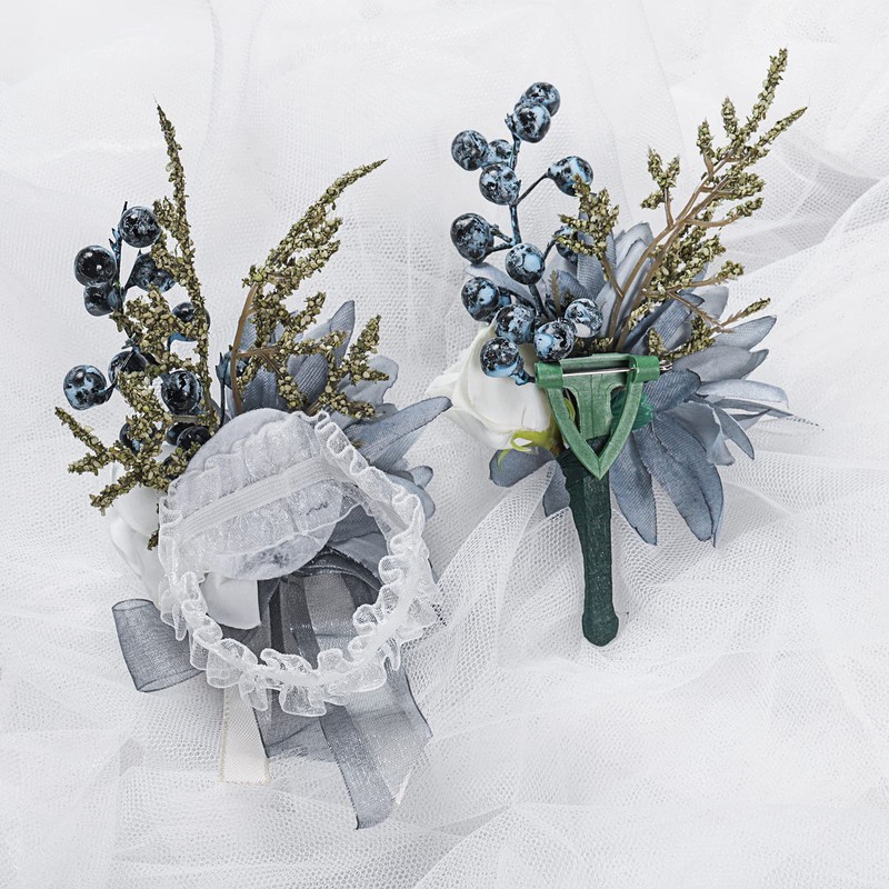 - Package Content: Set of 1 boutonniere and 1 wrist corsage. Boutonniere size: 4.92' height and 3.15'' width,Corsage size: approx 3.15" dia